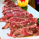 (Base focaccia, stracciatella, pomodorini, bresaola e rucola)